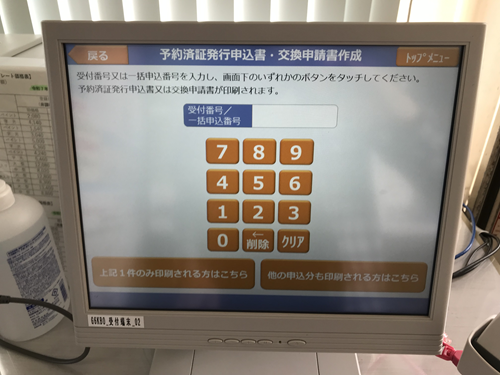手元にQRコードがない場合でも、受付番号がわかれば、窓口近くにある受付端末からQRコードを出力することができますので、必ず、申し込んだ際の手続き完了メールの印刷したものを持参するか、受付番号をメモしていくようにしましょう。